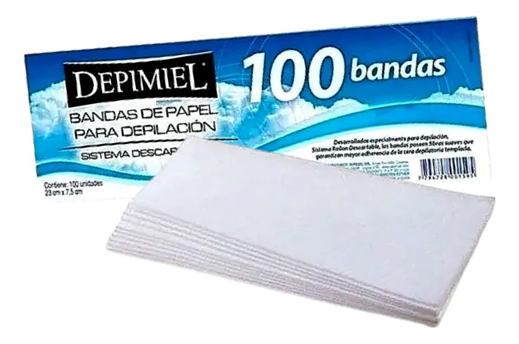 ¡Logra una depilación impecable y sin residuos! El pack de 100 Bandas Depilatorias Depimiel es el complemento indispensable para sistemas de cera descartable (Roll-on o cera de tarro). Fabricadas con fibras de alta resistencia, garantizan un tirón firme y preciso sin romperse ni dejar pelusas.