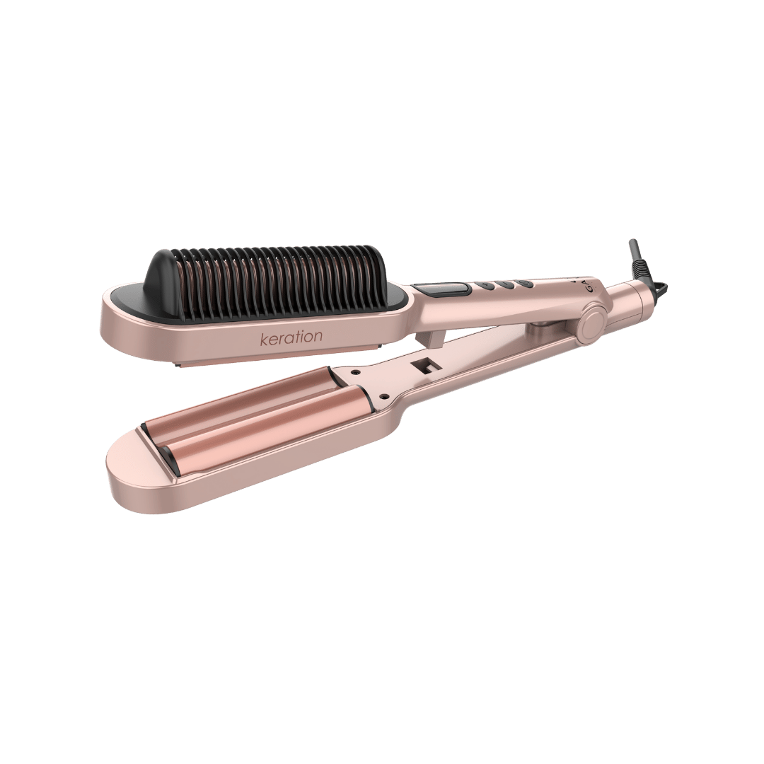 Tip de Estilo: Para ondas más naturales, utiliza el Waver en secciones anchas de cabello y termina con un poco de sérum protector. Para un liso perfecto, utiliza el cepillo desde la raíz con movimientos lentos y constantes.