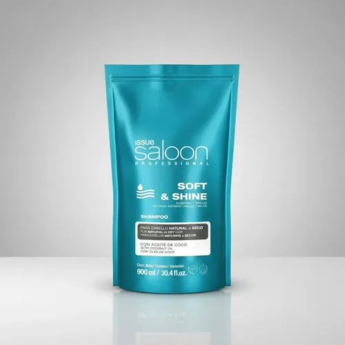 Issue Saloon Soft & Shine: Nutrición y Luminosidad ProfesionalEl cuidado del cabello no tiene por qué ser costoso ni complicado. La línea Issue Saloon trae a tu alcance el Shampoo Soft & Shine, un producto profesional pensado para mantener el cabello saludable, manejable y con un brillo excepcional, reduciendo visiblemente la opacidad.¿Por qué elegir Soft & Shine en Sachet de 900ml?Tecnología de Brillo Avanzada: Su fórmula exclusiva actúa sobre la cutícula del cabello, alisándola y permitiendo que la luz se refleje mejor. El resultado es una melena con un brillo espejo y una textura increíblemente suave.Formato Económico y Ecológico: El sachet de 900ml es el formato preferido por quienes buscan maximizar su inversión. Es fácil de manipular y reduce el desperdicio de plástico comparado con los envases rígidos tradicionales, siendo una opción más sustentable.Ideal para Uso Diario: Su fórmula equilibrada limpia profundamente sin barrer los aceites naturales del cabello, permitiendo un uso frecuente para mantener el estilo siempre impecable.Desenredo Facilitado: Al suavizar la fibra capilar, reduce la fricción durante el lavado y el peinado, minimizando el quiebre y facilitando la salida de los nudos.Beneficios Principales:Versatilidad: Apto para todo tipo de cabello, especialmente aquellos que han perdido su luminosidad natural.Rendimiento: 900ml de producto concentrado que garantizan semanas de uso continuo con resultados profesionales.Experiencia de Salón: Aroma agradable y textura cremosa que transforma el lavado diario en una experiencia de cuidado personal.Especificaciones Técnicas:CaracterísticaDetalleContenido900 mlPresentaciónSachet (Respetuoso con el medio ambiente)Tipo de CabelloOpaco / Seco / Todo tipoEfectoBrillo, suavidad y controlUsoProfesional / Doméstico